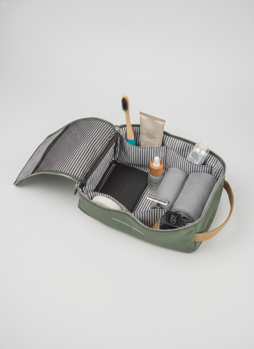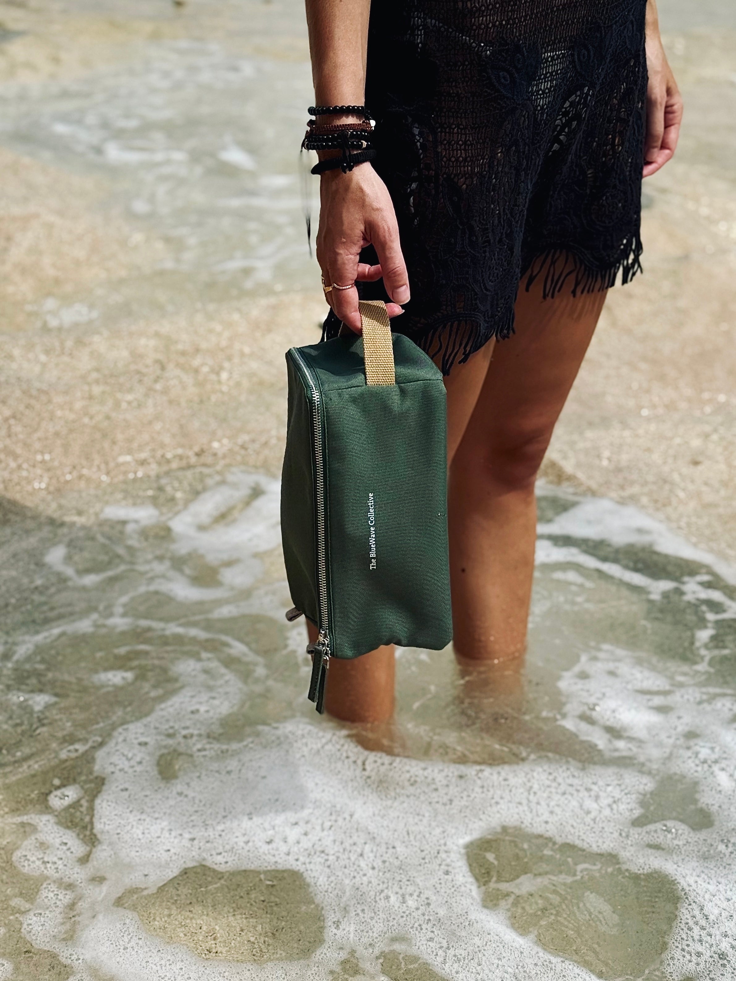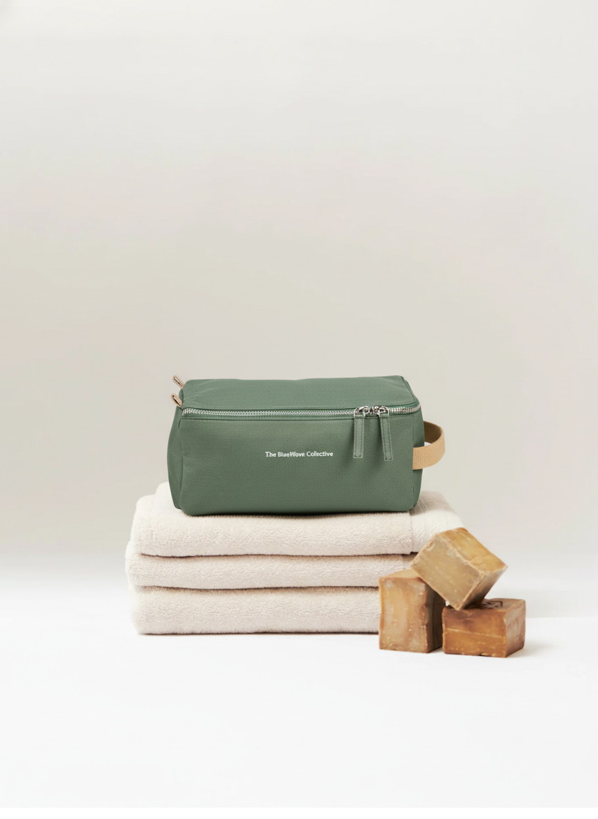 De Toilettas Sand is je go-to toilettas voor onderweg. Compact, waterafstotend en altijd klaar voor citytrips, sportschool of weekend weg. Fris van binnen. Groen van buiten.